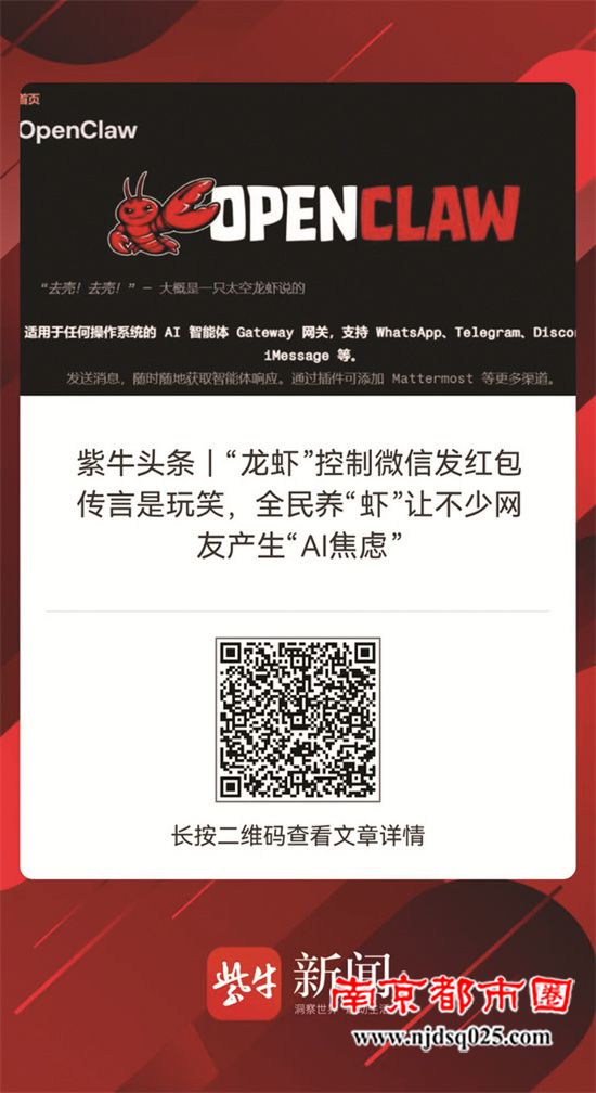AI行业从业者王先生告诉扬子晚报记者,针对目前市面上的“龙虾”类工具(OpenClaw、QClaw等),从官方正常使用场景来看,其权限均有明确限制,网传“可控制微信直接发送红包”的说法并不成立,但也不排除存在第三方技术篡改、被木马病毒恶意攻击等潜在风险。