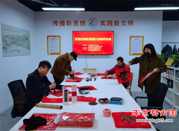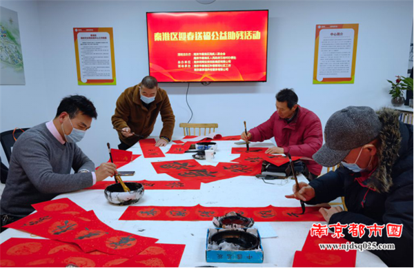 南京都市圈讯 今天是立春,南京市秦淮区残联举办“秦淮区迎春送福公益助残活动”,邀请杨家伟、张勇、王长明、张建明热心残疾人书法家在科巷菜场社区工坊现场写“福”字和新春对联,免费赠送长期以来关爱残疾人和支持残疾人事业的爱心人士和辖区居民。