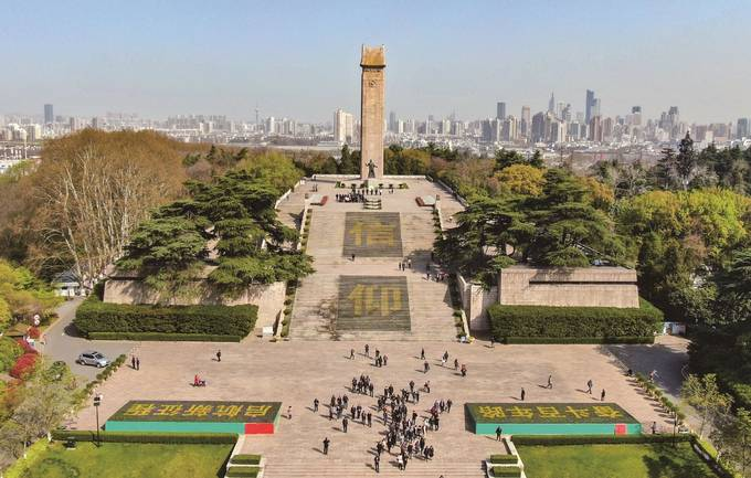 南京都市圈讯 昨日,南京雨花台烈士纪念碑广场上,一组巨型主题花卉景观亮相。花坛采用紫色和黄色的堇,一共十六万盆,摆出“信仰”和“奋斗百年路,启航新征程”字样,场面非常壮观。 (图文/张洪 邵丹)