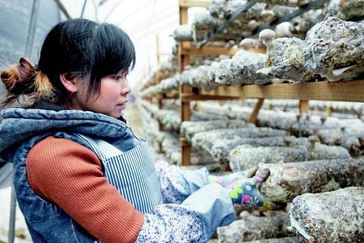 菇农正在采摘食用菌。