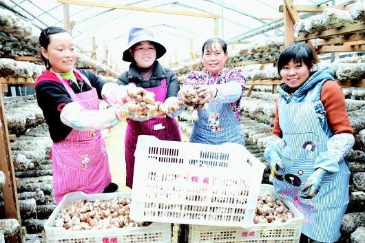 食用菌丰收,菇农笑颜开。