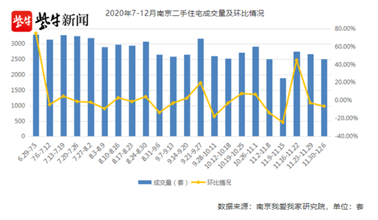 南京都市圈讯 临近年末,南京二手房市场出现降温迹象。记者从多家中介获悉,近期二手房的交易量有所下滑,连续两周出现回落,不过挂牌价依然坚挺,较11月上涨了200元/㎡左右。