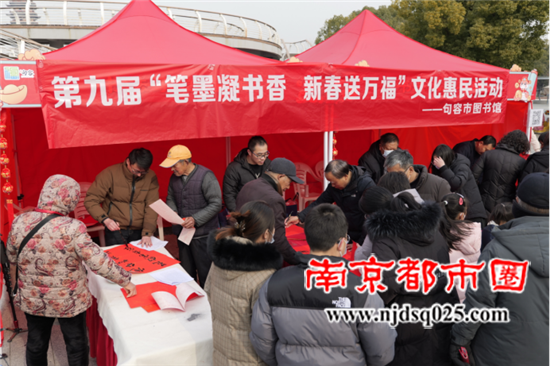 句容年货大集墨香四溢 图书馆志愿队送福迎春