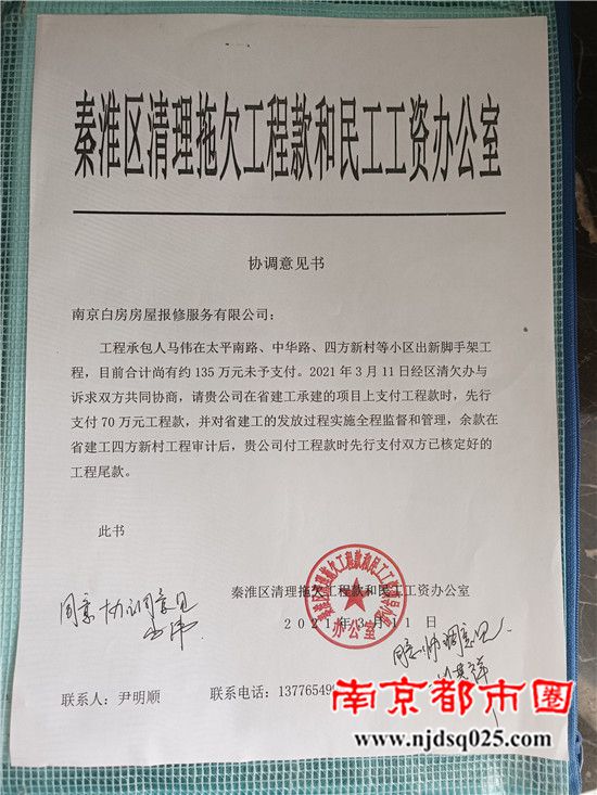 秦淮区“清欠办”帮分包商清理“六年之久”的工程款去了哪?【实名举报】