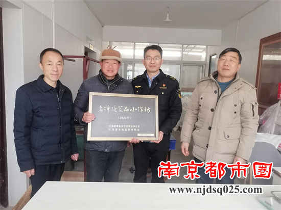 宝堰镇政府为荣获“江苏省名特优食品小作坊”的加工坊上门授牌