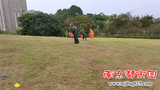 句容市城管局开展冷季型草复播工作