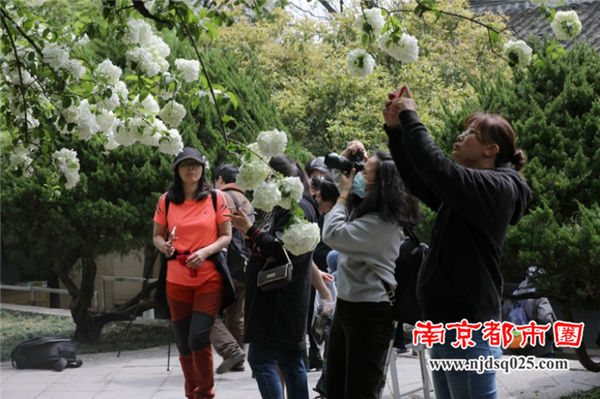一蒂千花白玉团! 南京崇正书院绣球花绽放吸引众多游客