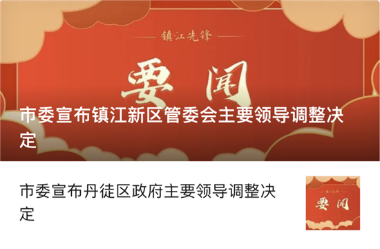 市委宣布镇江新区管委会、丹徒区政府主要领导调整决定