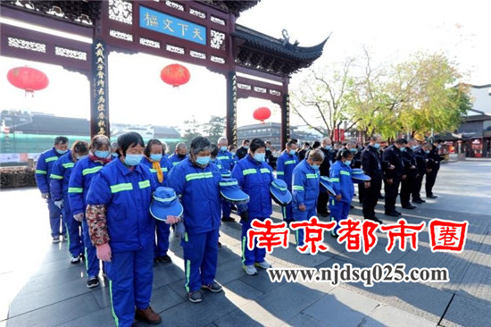 南京夫子庙地区管委会组织景区城管和 保洁员凭吊“遇难同胞”