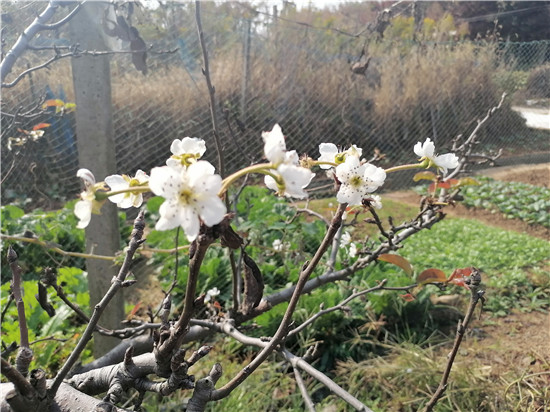 江苏多地梨树秋季反常开花 来年梨园或受损严重