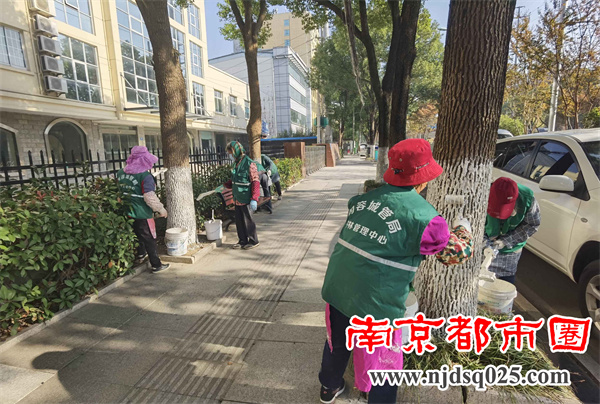 句容城管:树木刷白“穿新衣” 防虫抗冻迎寒冬