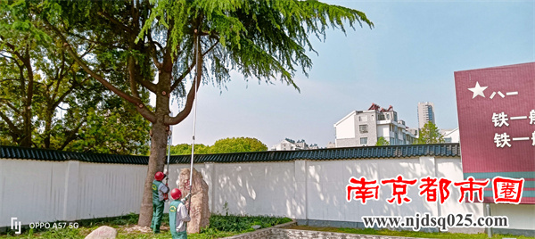 句容市城管局践行“双拥”精神为武警部队修剪树木