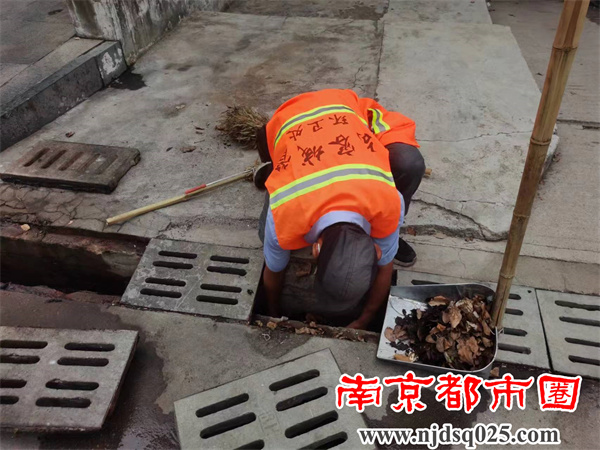 句容城管环卫工人坚守一线 做好台风来临前的防御工作
