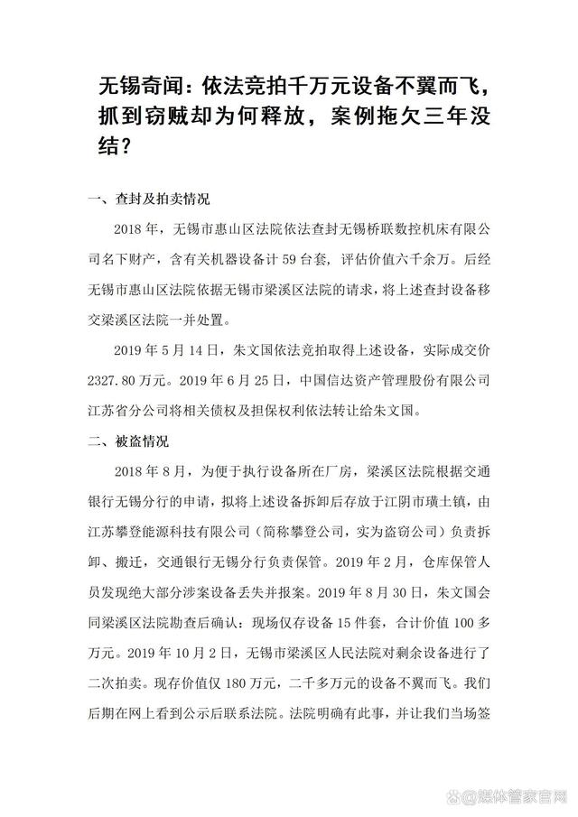 无锡奇闻:依法竞拍千万元设备“失窃”案例缘何三年未结?