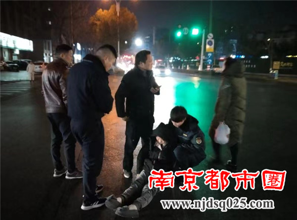 女子骑车摔倒,句容城管队员冒雨救助