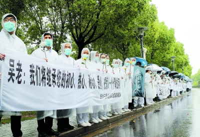 苍天飞泪雨,送别吴孟超 上海大雨中,送行队伍绵延数里