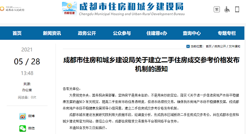 成都发布二手房成交参考价 业内预计后续仍有城市跟进