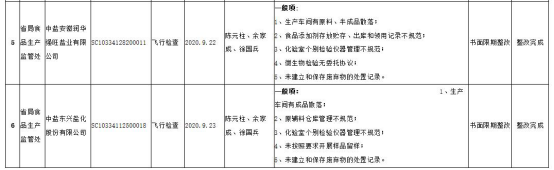 11月17日,安徽省市场监督管理局食品生产监管处日常检查信息通告(2020年9月)。中盐集团旗下2家公司在飞行检查中发现一般项问题被要求整改。