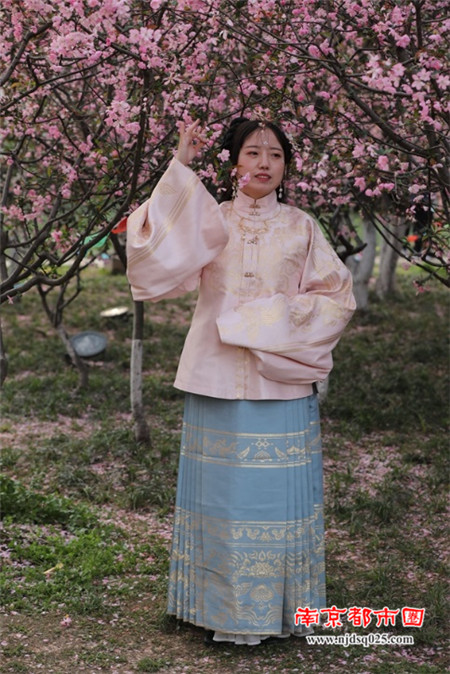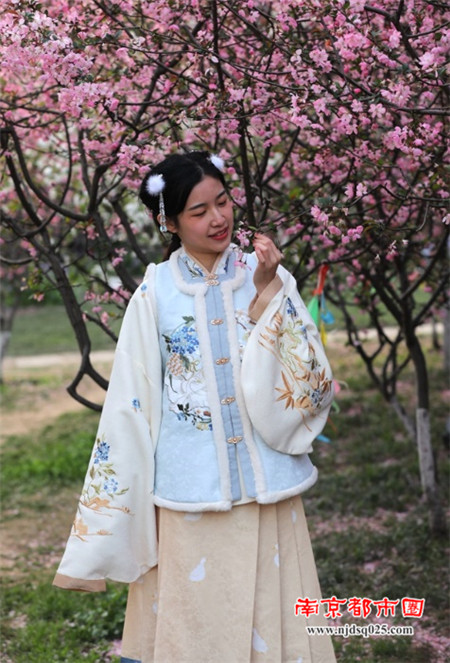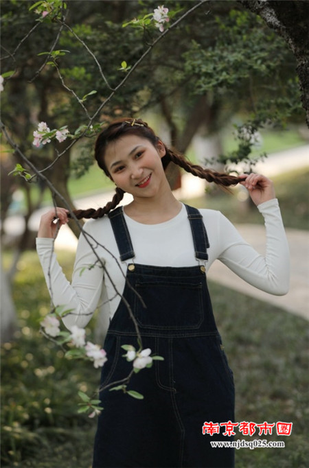 在这满园怒放的海棠花间,穿梭着众多打扮时尚的俊俏美少女,她们活力四射、美丽动人,成为景区一道靓丽的风景。(图文/朱旭先)
