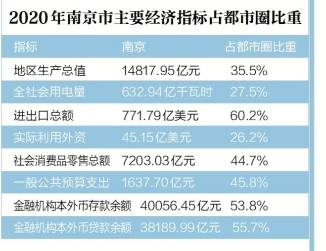 根据2020年南京都市圈(以下所涉及的南京都市圈数据,均是指规划范围10个地区的数据)主要发展数据,南京都市圈亦是一座上升的“圈”。