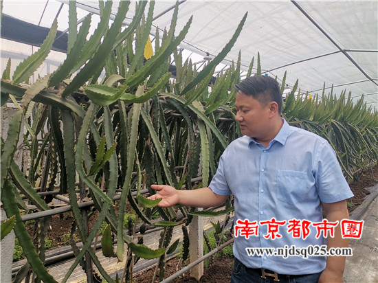 南京都市圈讯 (刘云 康文华 蒋梦雨)位于句容市茅山镇东部干线有一处风光秀丽的家庭农场,那就是熊国云的赐福火龙果家庭农场。“赐福火龙果家庭农场年产火龙果20万斤,2019年和2020年都出现了供不应求的局面。”日前,记者走进句容茅山赐福火龙果家庭农场,熊国云正在和扬州职业学院组织前来参观的农业学习团队交流。