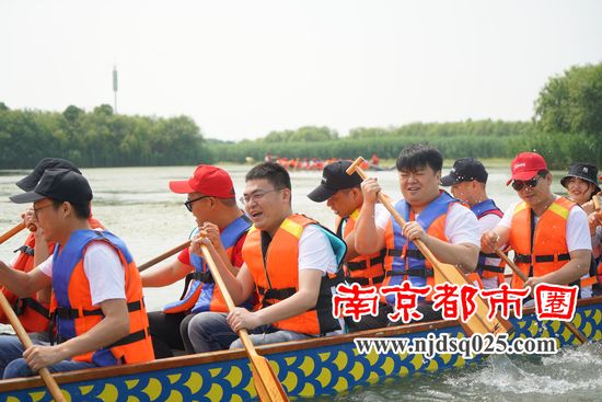 4日一早,碧水蓝天,微风徐徐,大家在太湖边集合进行热身运动,为接下来紧张刺激的赛龙舟比赛做充分准备。两支队伍在水中练习了有20分钟后,教练倒数三个数,两支龙舟队便拿起浆在水中奋力划动,龙头上的鼓手用力的敲打着鼓“咚咚咚!”和岸上的加油助威声响成一片。比赛共进行了三次,最终评出了名次。