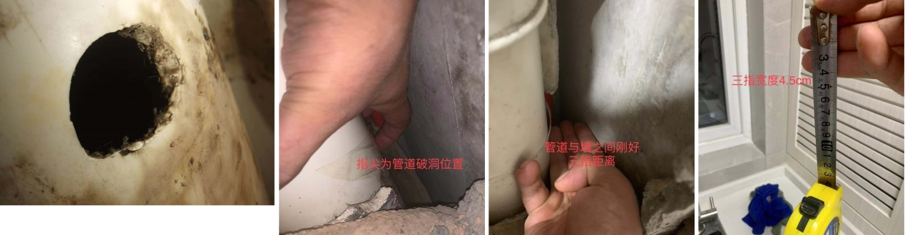 “管道的材质是PVC,在这个狭小的空间内,除非力道和速度都达到才可以戳穿这个管道。” 宋先生直言,“在检测时,我曾问工程师在不破坏墙面的情况下,能在那个位置开洞?工程师当时也表示做不到。”
