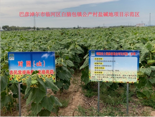 为了做好这个示范项目,陈威三年的时间没有回广西老家,每天早出晚归,和农牧局的技术人员以及当地农民一起到田间耕地、育苗、施肥、浇水、日常管理,直到最后的作物收割、测产,每一个环节都参与并亲力亲为,经实验结果显示,使用喷施宝产品降低土壤全盐含量57.4%-69.6%,葵花的出苗率提高了54.7%。