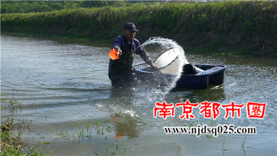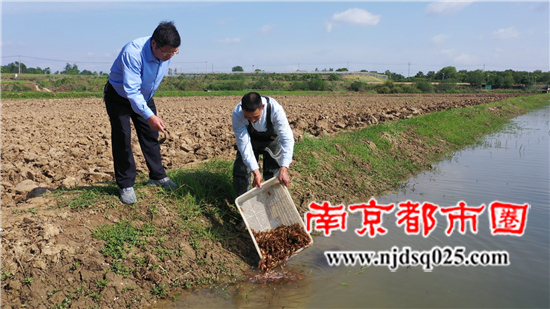南京都市圈讯 5月10日晨光初显,位于句容市后白镇延福村的后白良种场田埂上,已缀满来回忙碌的脚印,农场工人们正把200斤小龙虾苗投放到有机稻田环沟里,他们也是在播撒着一年丰产增收的新希望。