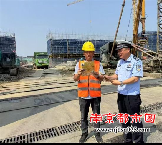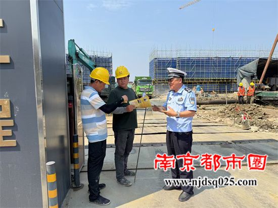 南京都市圈讯 为保障建筑工地安全施工、施工人员、绿化施工人员的出行安全,5月27日,宜兴市交警大队周铁中队民警来到华仁建设集团有限公司彭干村施工工地,向施工人员普及交通安全知识,发放相关宣传资料,提醒施工人员出入遵守交通规则,同时注意安全生产。