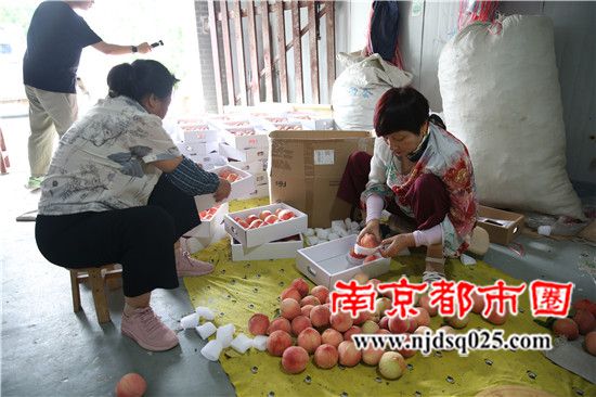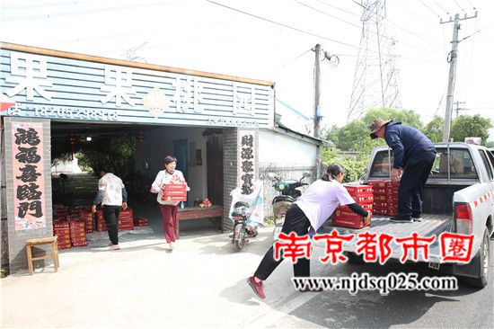 南京都市圈讯 2025年7月11日上午,句容市大卓果果桃园女主人王玉琴一大早就组织6名员工,钻进桃园里,采摘新鲜水蜜桃,然后,选桃、包装、装箱,把包装成箱的110箱鲜桃搬运至小车上,运送到句容市环卫处华阳中转站,向环卫工人表达果农的一片爱心。