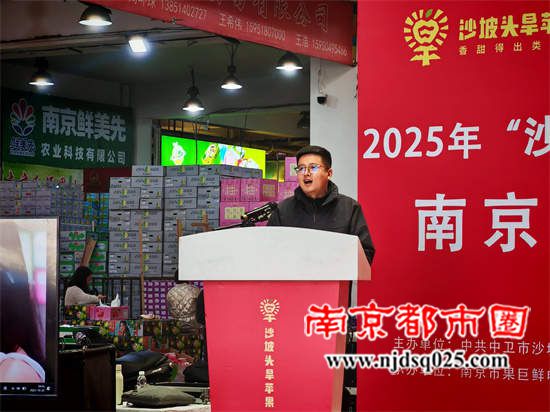 南京都市圈讯 金秋十月苹果香。10月22日上午10时许,由宁夏中卫市沙坡头区人民政府主办,南京果巨鲜电子商务有限公司承办的2025年“沙坡头旱苹果”南京推介活动,在地处江宁区的南京众彩农副物流中心精彩举办。